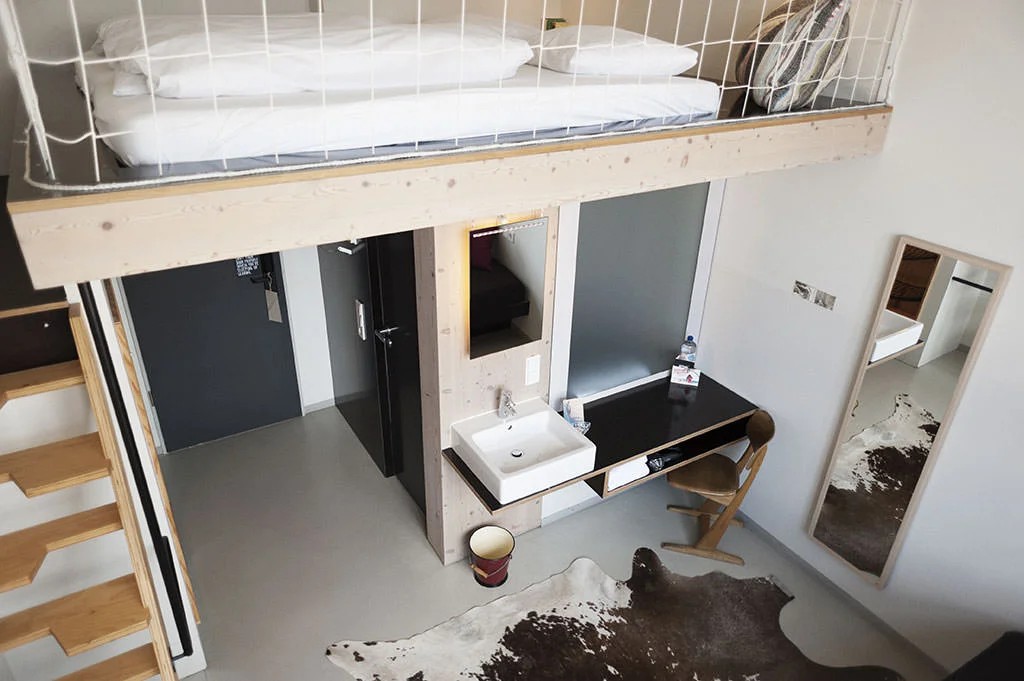 Michelberger Hotel - Hip hotel situated centrally between all the must-see neighborhoods. The hotel has welcoming staff, a wonderful lobby bar, and a great breakfast (need anything else?). They even make their own coconut water and spirits. Pick your price with rooms that range from cozy to spacious, with the Loft Room (pictured) our personal favorite. 40, Warschauer Str. 39, 10243 Berlin, Germany